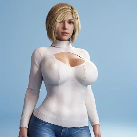 트리거: PowerGirlInjustice2, 1girl, 큰 가슴, 망토, 금발 머리, 가슴 사이 틈, 장갑, 흰색 바디수트, 슈퍼히어로, 짧은 머리, 파란 눈, 카우보이 샷
