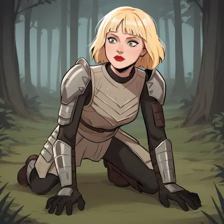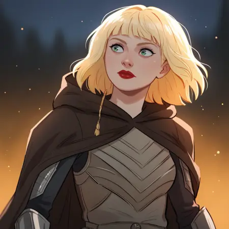 ShinHati, 1girl, solo, blonde hair, short hair, green eyes, lipstick,