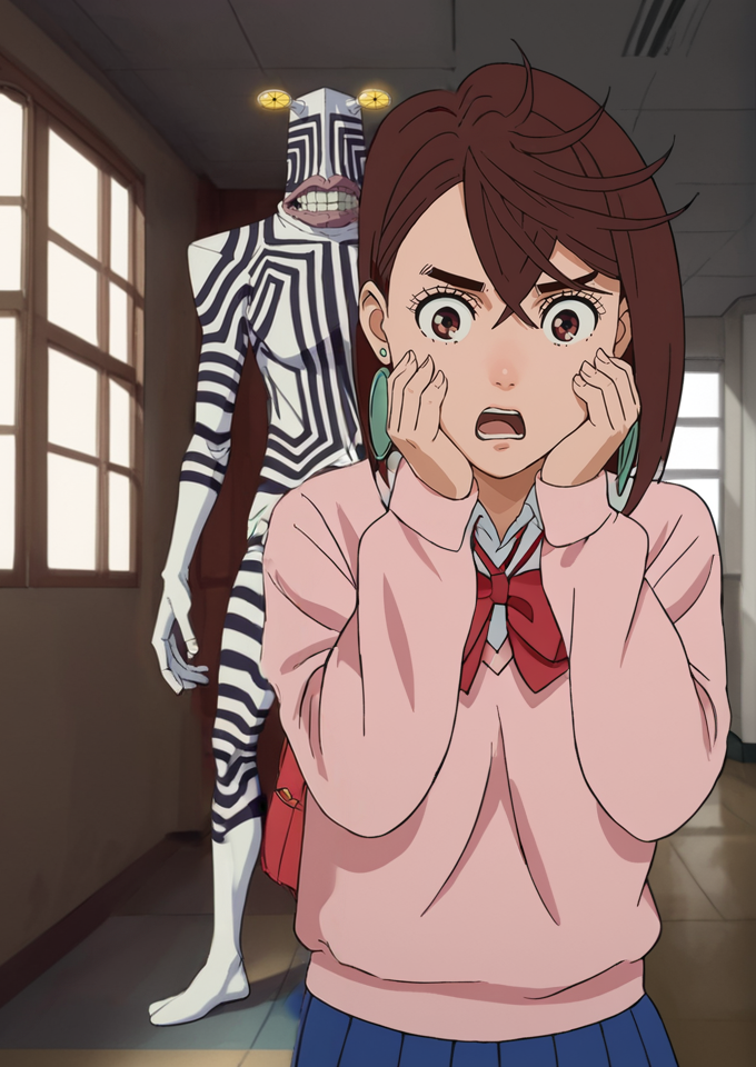 『ダンダダン』のセルポ人は、フラクタルな四角模様、小さな巻貝のような目、大きな口で本当にスタイリッシュに見えます。