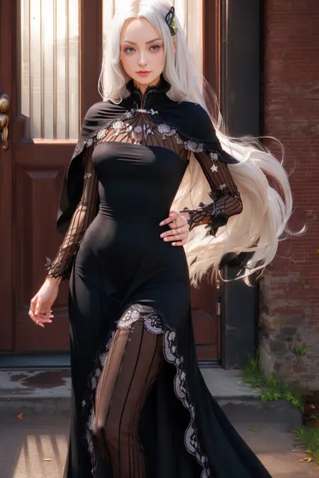 EchidnaRZM, 彩色睫毛, 长裙, 黑色长裙, 竖条纹长裙 - 用于她的日常装扮。