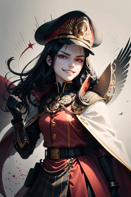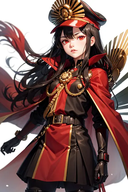 • Oda Nobunaga: hat,cape, red eyes, military uniform,black hair