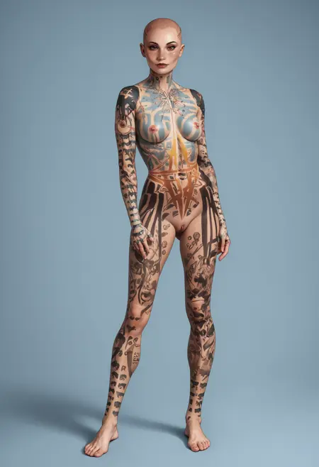 注意:纹身效果可能不稳定,耳饰/穿孔等细节也可能不一致。