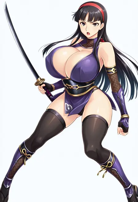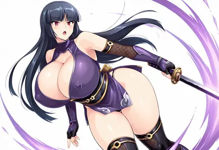 kunoichi,cleavag,cleavage cutout,japanese clothes,elbow fingerless gloves,NINJYA SHOES,bare shoulders,sash,short kimono,katana,
