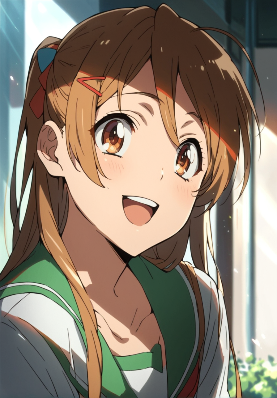 미야모토 레이, 갈색 머리, 긴 머리, 아호게, 갈색 눈
