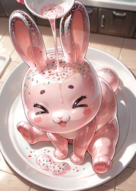 グミバンを作成します。グミベア、ゼリー、スライムガールの間のような存在です。かわいくて、うーん、食べられる可能性もあります?(詳細は下記!)これらは以前にDall-Eで行った実験から生まれました。ほぼデータセットを手に入れたので、それを有効活用するためにこのLoRAを作成しました。しかし、元になる素材が限られているため、ポーズや背景についてはやや硬直気味です。