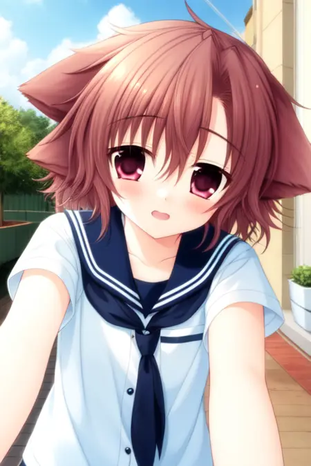 그리고 마지막으로, 118장의 이미지를 가진 비주얼 노벨의 마스코트인 히나타! 동물 귀를 주기 위해 개 귀를 달아주세요.