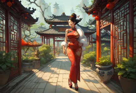 Lora for stereotypical chinese architecture inspired gardens, shrines and general interiors.