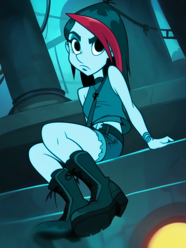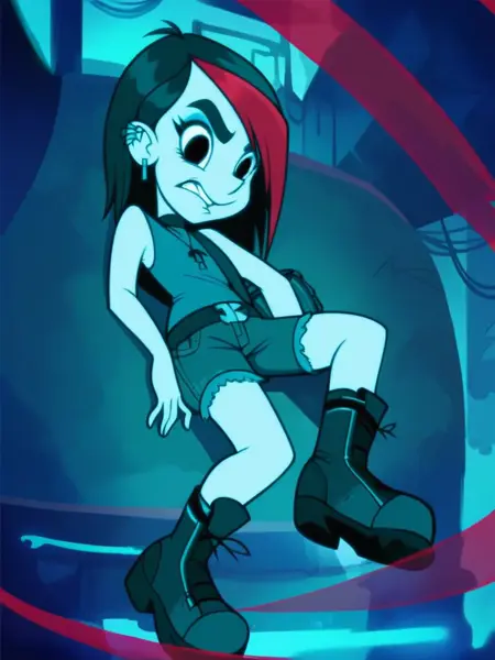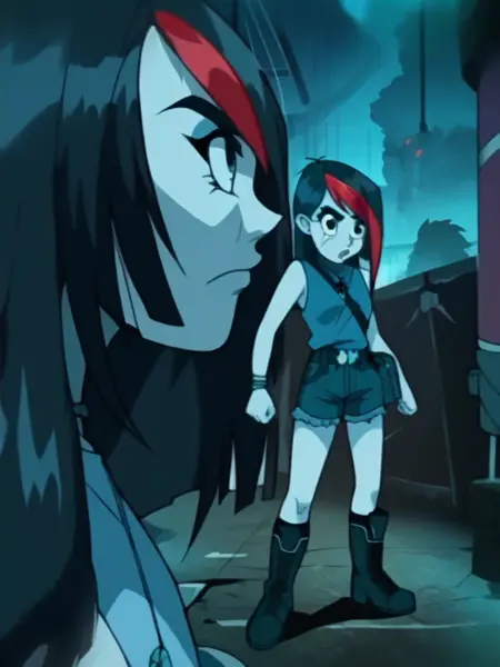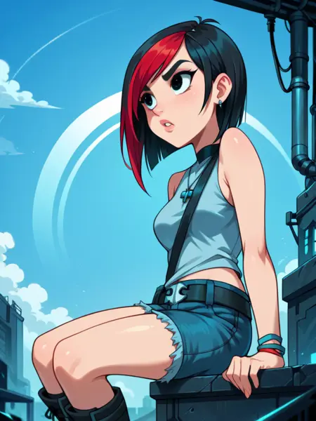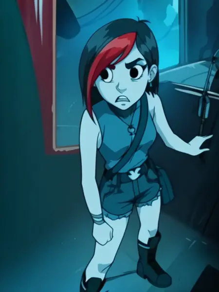 如果某个模型给她生成的头发不正确,请添加 刘海 Sweep,黑色头发,一道红色发丝。