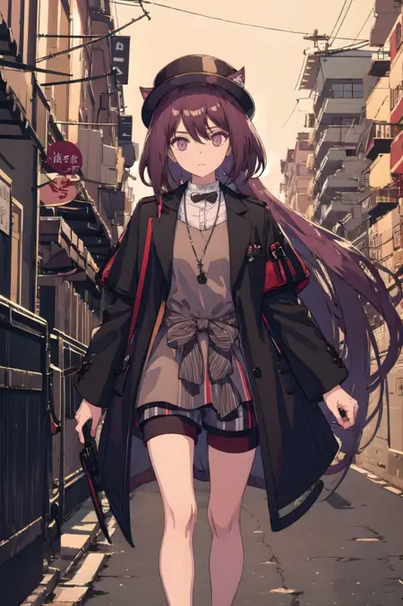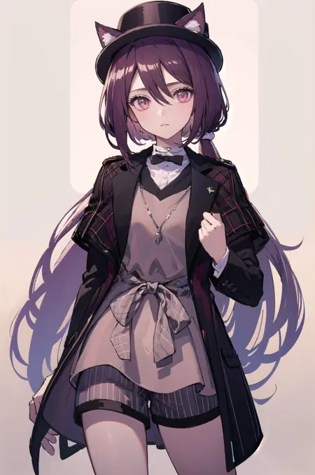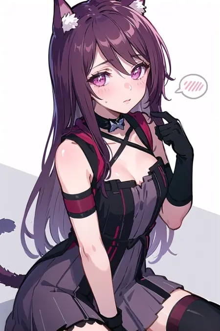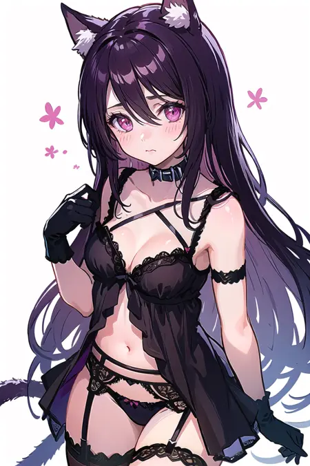 2.OG: thighhighs, gloves, cat girl, purple black dress;