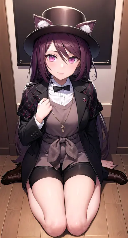 原版:及膝长筒袜、手套、猫娘、紫黑色连衣裙;