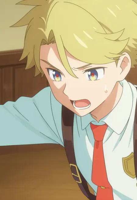 Yuto, blonde hair, multicolored eyes,