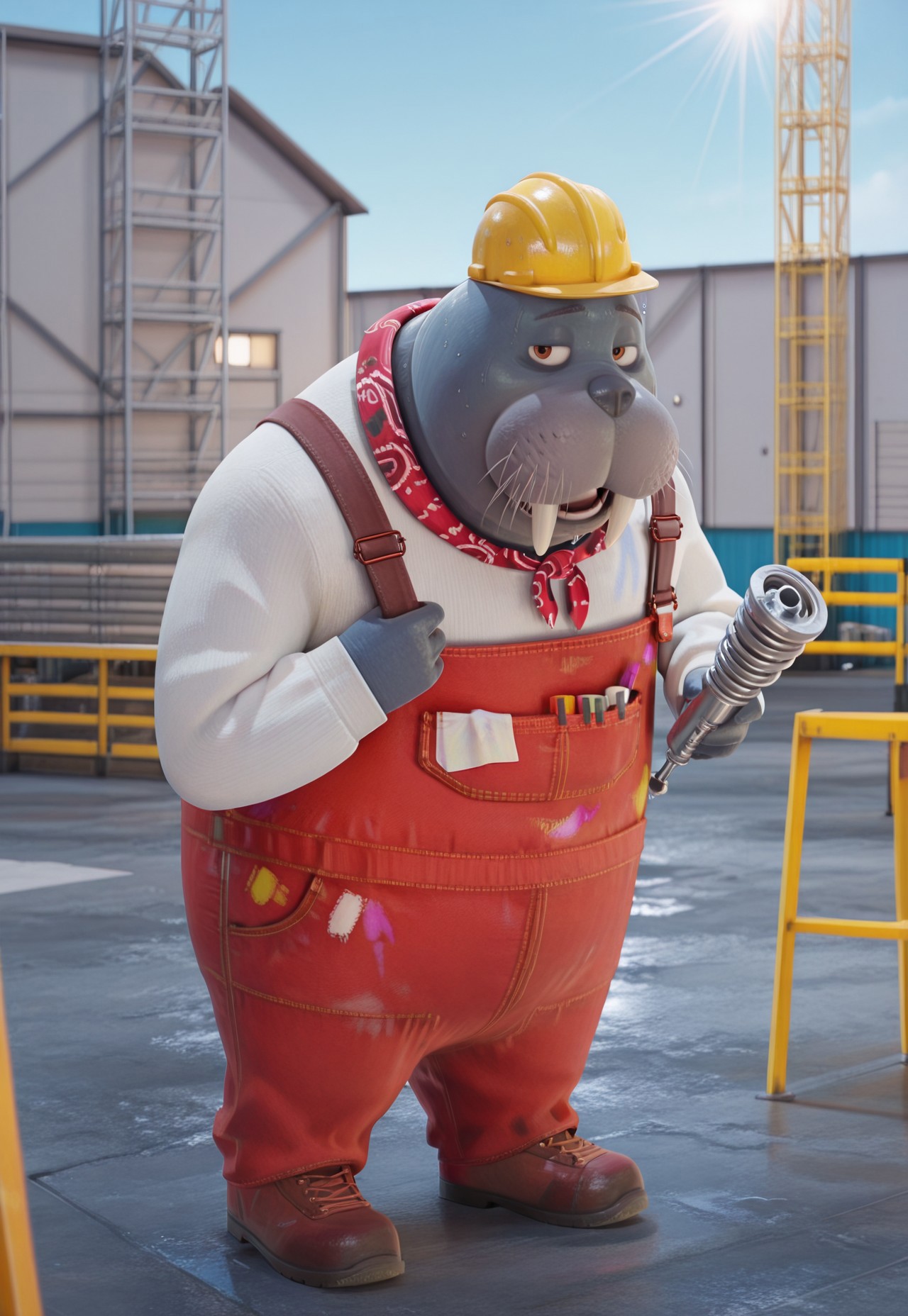 hardhat, overalls, boots,