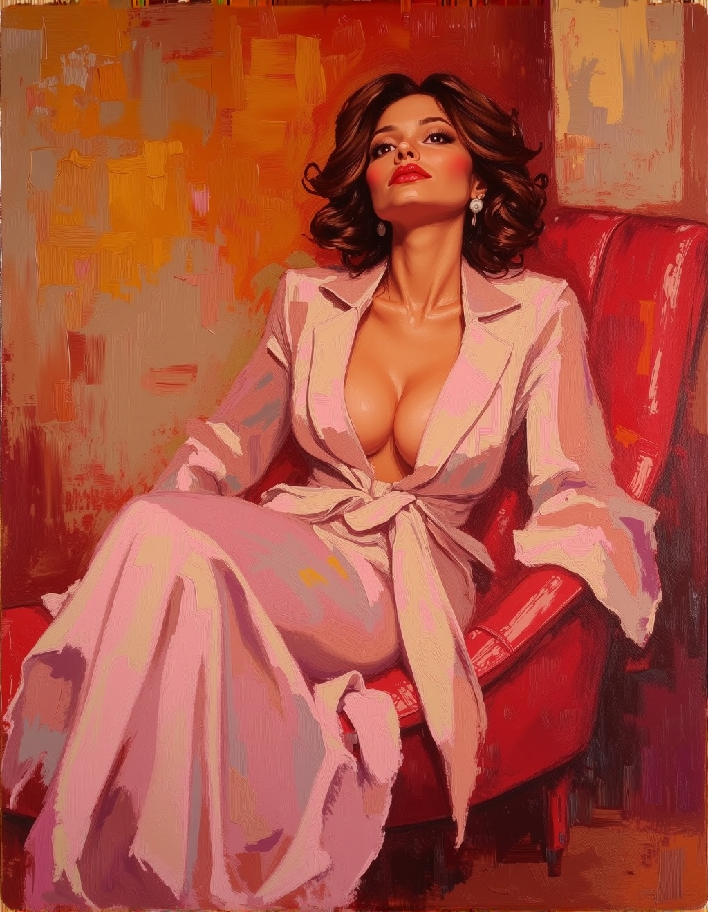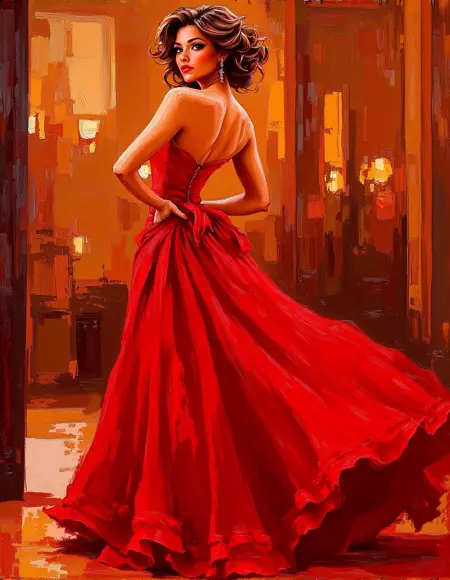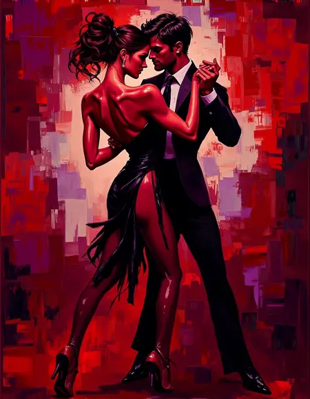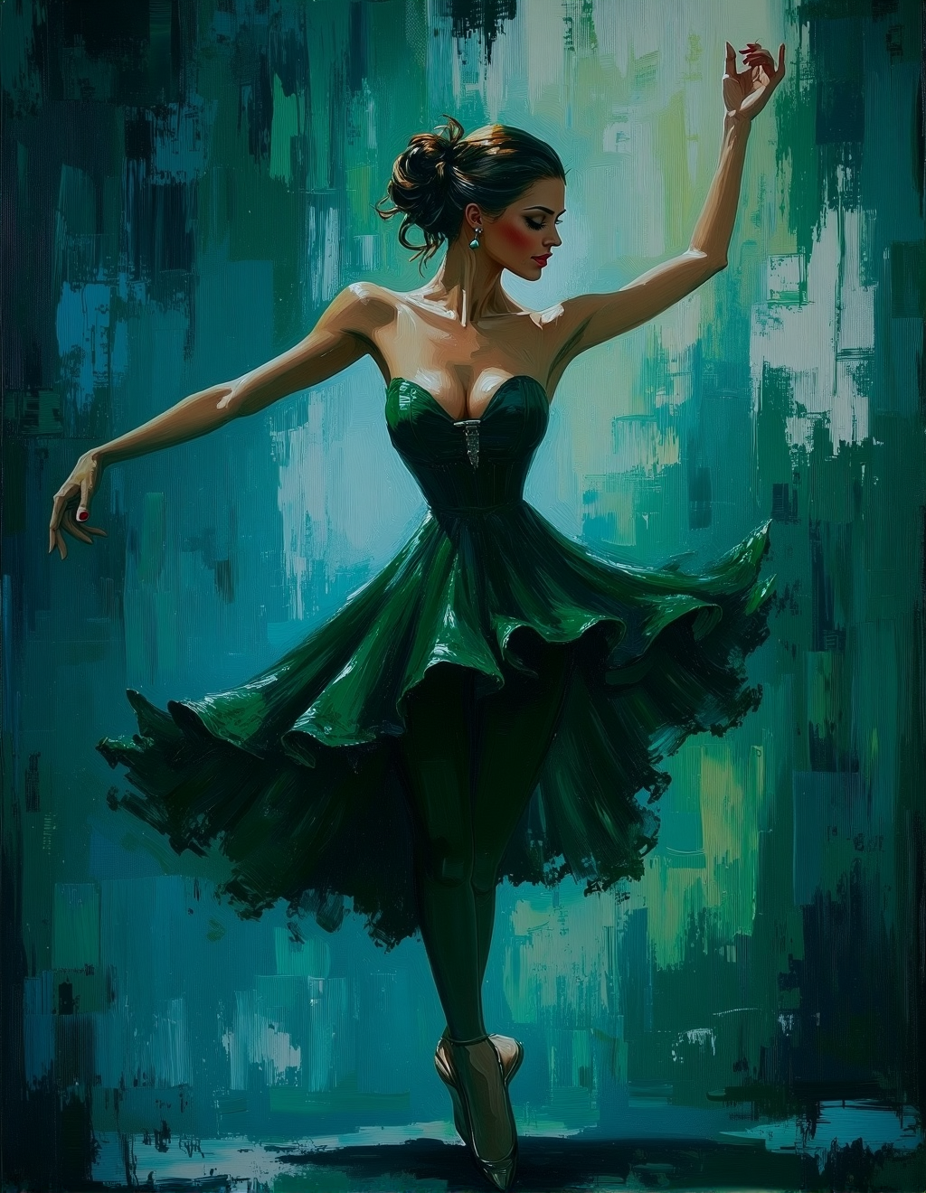彼は、ゆるやかな筆致と豊かなテクスチャーを組み合わせた独自の技法を用い、動的で質感豊かな表面を生み出し、絵画に深みと三次元的な奥行きを加えている。アトロシェンコは、特に衣装や背景の描写において鮮やかな色を使用することで、構図の視覚的インパクトを高めている。