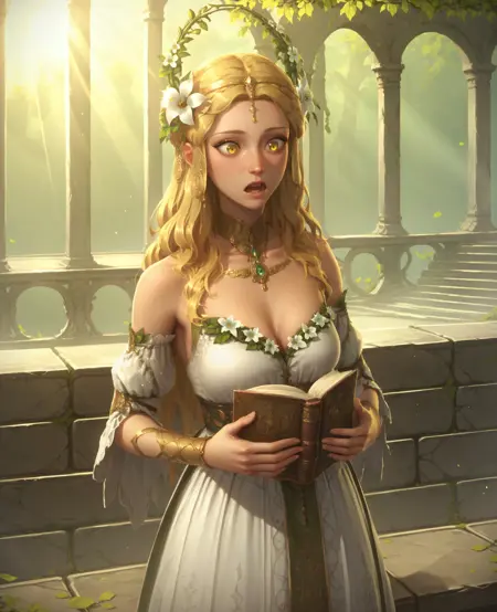 トリガー: EostridRSL, 1girl, 明るい髪, 長い髪, 黄色い目, 髪の花, 髪飾り