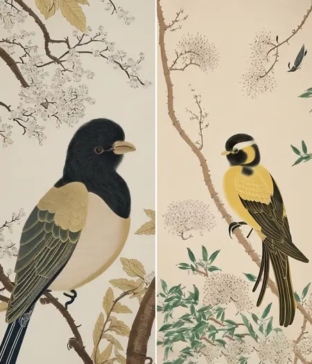 模仿宋代绘画中的优雅线条、柔和色彩和细致纹理。