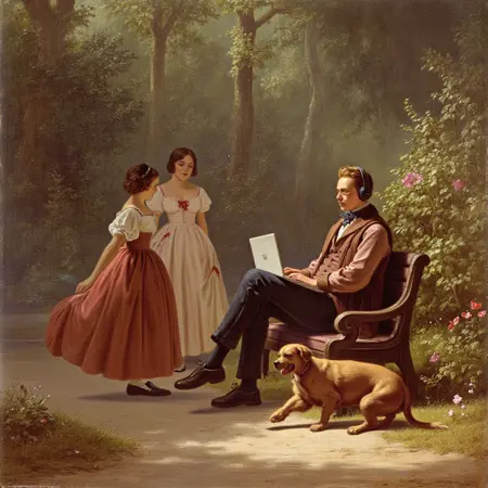 나는 19세기 독일 화가 칼 스피츠베그의 스타일로 이미지를 만들어보자는 즉흥적인 아이디어를 떠올렸습니다. 하지만 Flux는 제작자들이 "블랙포레스트 랩스"라 부르더라도 이 스타일을 알지 못했습니다. 그림들을 수집하고 태그하는 과정을 절반쯤 진행하던 중, 이미 누군가가 같은 LoRA를 만들었다는 사실을 알게 되었습니다. 그러나 나는 계속 진행했습니다. 왜냐하면 그 LoRA로 얻은 결과가 재미있었기 때문입니다—건물은 매우 스피츠베그 스타일처럼 보였지만, 인물들은 그렇지 않았습니다.