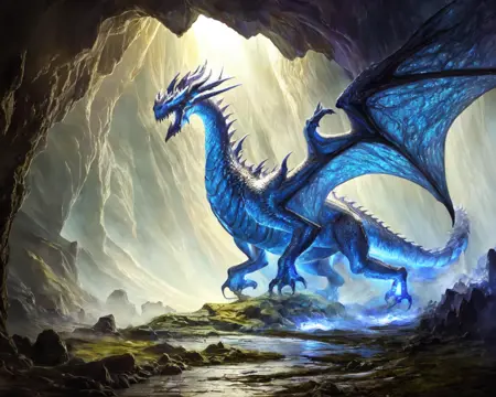 長い首、大きな角、クレストを持つなど、見た目が華やかなドラゴン(トリガー単語に加えてこれらの単語をプロンプトに使用可能)。