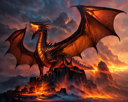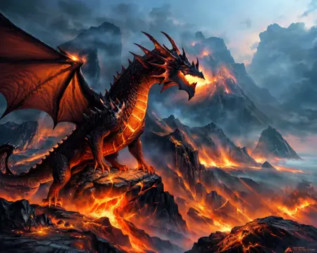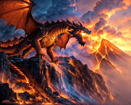 녹은 돌로 구성된 드래곤. 용암 같은 피부와 주변에 불이 타오릅니다.