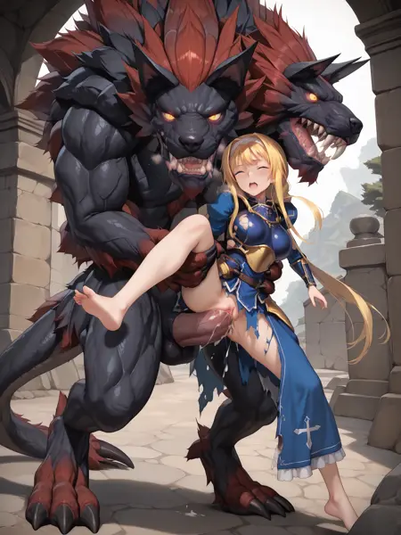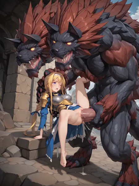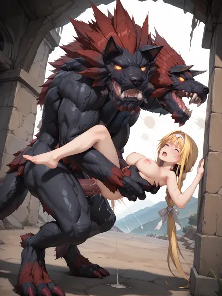 keruberos_ill, male monster, (multiple heads),huge penis, glowing eyes,claws, interspecies,