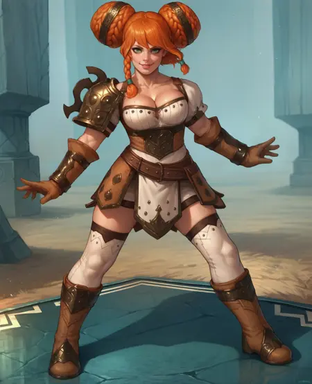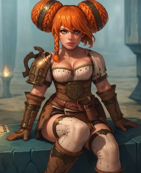 Triggers: MaulieTankard, 1girl, orange hair, braid, double bun, lips