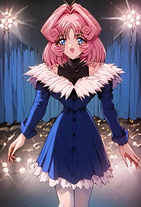 Rina_CD11, 1990년대(스타일), 1girl, 분홍색 머리, 중간 길이 머리, 파란 눈, 날씬한 허리, 넓은 엉덩이, 큰 가슴, 올라간 가슴, 올라간 엉덩이,