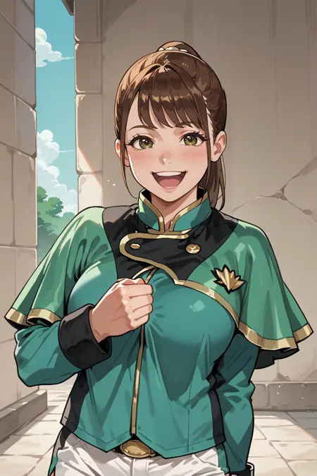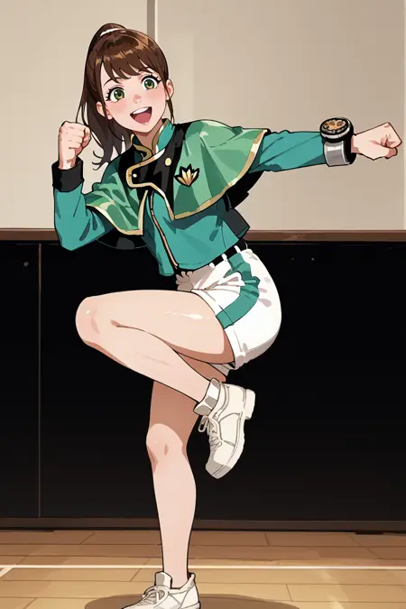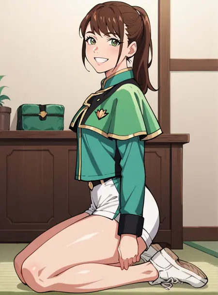 키레미게이저 유니폼: senauniform, 녹색 눈, 흰색 짧은 망토,