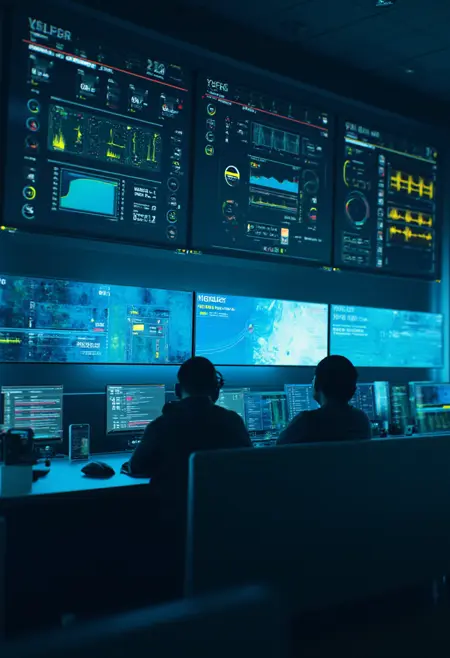 이는 세련되고 현대적인 디자인의 미래형 고기술 컨트롤 패널을 디지털로 표현한 이미지입니다. 중앙에는 흰색 숫자 "93"이 검은색 광택 있는 원 안에 담겨 있으며, 미세한 파동 패턴이 있는 원이 중심에 위치합니다. 배경은 주로 어두우며, 검정에서 깊은 파란색으로 기울어진 그라데이션을 가지고 있습니다. 중앙 원 주변에는 오렌지, 파랑, 녹색 등 다양한 색상의 조명이 켜진 버튼과 표시등이 격자 형태로 배열되어 있으며, 각 버튼은 소리, 시각, 설정과 관련된 기능을 나타내는 다양한 아이콘과 라벨을 가지고 있습니다. 중앙 원 위에는 "NETA"라는 단어가 미래적인 빛나는 글꼴로 표시되어 있고, 원 아래에는 "MODERN VIRTUAL INSTRUMENTS GUI KIT"이라는 문구가 깔끔한 흰색 산세리프 글꼴로 쓰여 있습니다. 전반적인 미학은 세련되고 전문적이며, 고기술 스케일의 분위기를 지닙니다. 이미지는 반사와 조명 효과로 인해 사실적인 3D 외관을 가지며, 텍스처는 매끄럽고 광택이 있어 미래적인 분위기를 강화합니다.