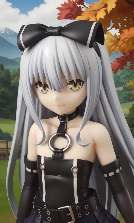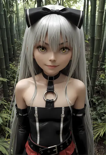 外观 → ohwx, 灰色头发, 长发, 黄色眼睛, 锁骨, 极长发, 灰色眼睛, 发丝遮眼, 白发, 短发, 平胸, 乳房,