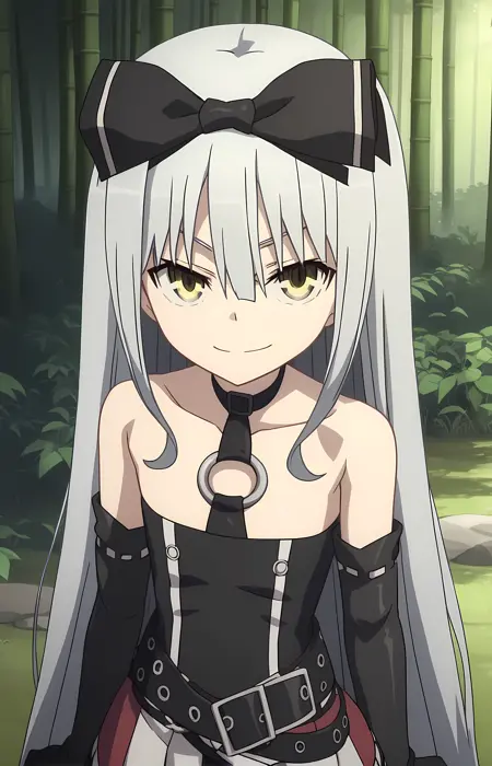 Appearance → ohwx, grey_hair, long_hair, yellow_eyes, collarbone, very_long_hair, grey_eyes, hair_between_eyes, white_hair, short_hair, flat_chest, breasts,