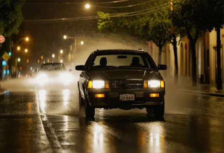 トリガー語: davidfincherstyle, nighttime, daytime, lamps, outdoor, interior, volumetric lighting, volumetric fog, cinematic, depth of field, warm tint, cool tint, gloomy, raining, winter
