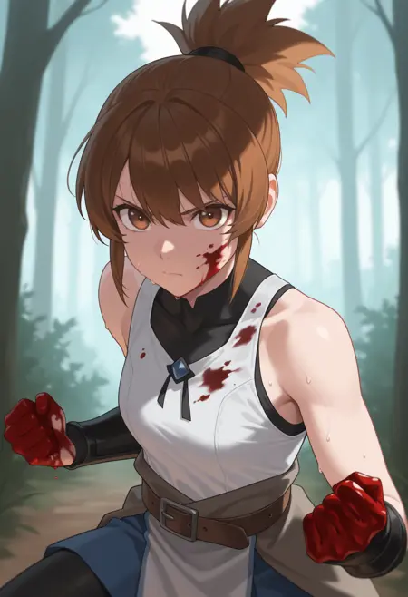 トリガー+外見: m4rci, 短髪, 茶色の髪, ポニーテール, 茶色の目