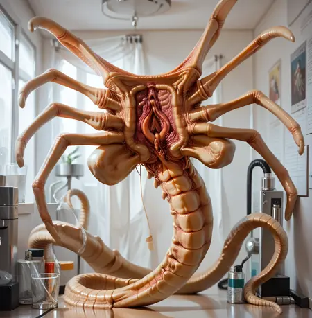 score_9, score_8_up, score_7_up, (facehugger), 페이스허거는 아주 아주 작은 곤충, 제노모르프, 외계인, 솔로, 여자 성기 입, 산소 주머니, 꼬리, (8개의 발가락 같은 팔다리:1), (마스터피스, 최고 품질, 극세부 디테일), lora:incase-ilff-v3-4:0.3 , lora:add-detail-xl:2, ((중공간)), lora:facehugger\_jumping\_pony:0.8, ((기립된 난자관)), 성기 같은 난자관, 입에서 나온 촉수, 많은 정액