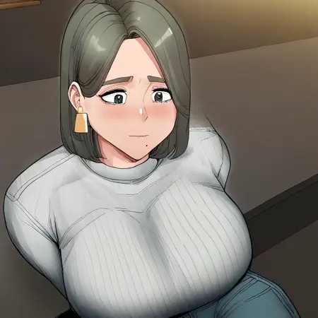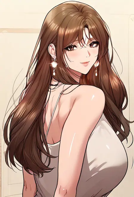 Yeon-Ah: yeon-ah , beautiful brown eyes, beautiful brown hair, huge and shaggy breasts, (1mole under her mouth left, ) ,