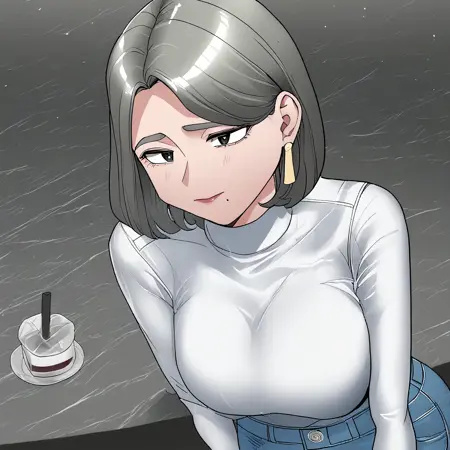 Manager: the_story_of_how_i got_together_with_the_manager_on_christmas, beautiful dark grey eyes, beautiful dark grey hair, beautiful medium bob haircut, huge and shaggy breasts, (1mole under right eye, ),