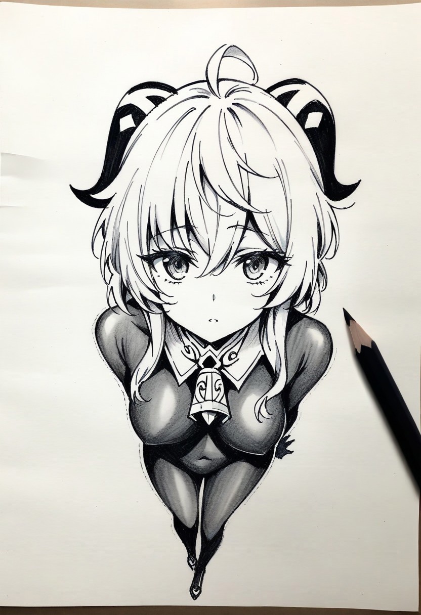 pencil sketch style, soft shading, soft delicate features
