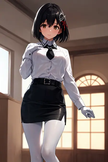 트리거: haguro (kancolle), 단발, 검은 머리, 갈색 눈, 머리 장식,