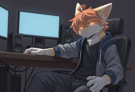 Illustrious: best quality, amazing quality, very aesthetic, absurdres, newest, kuttoyaki, male focus, furry, furry male, 1boy, solo, ahoge, orange hair, orange eyes, ...your tags...