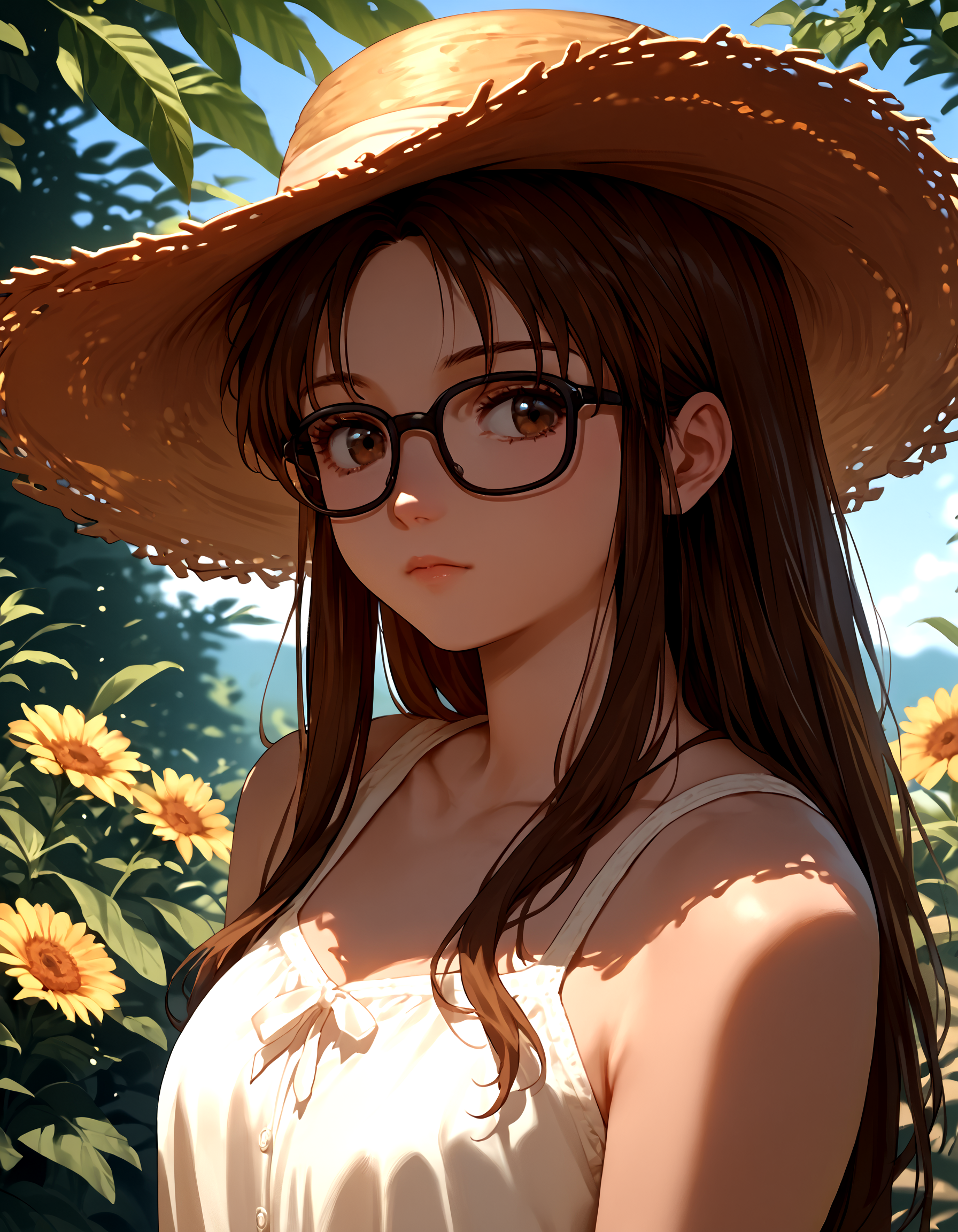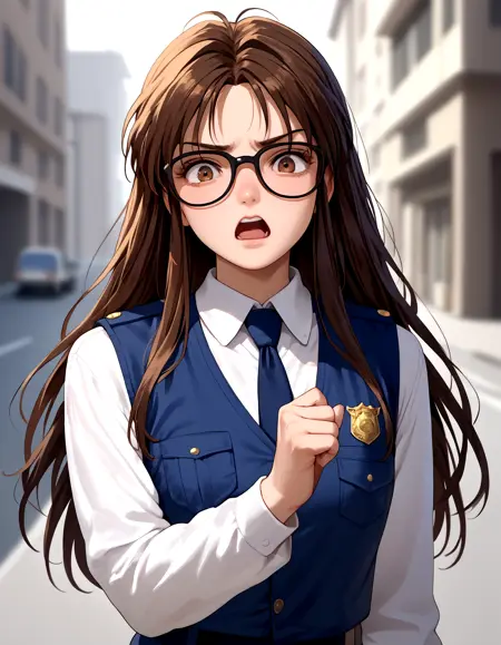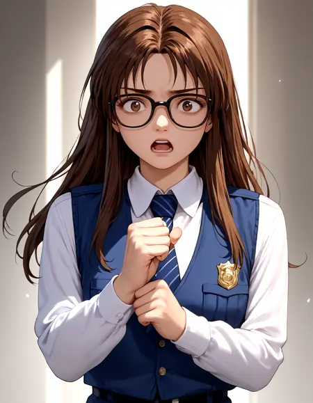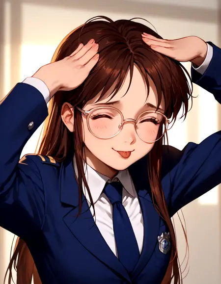 Base prompt: nikaido_yoriko, black glasses, brown_hair, long hair