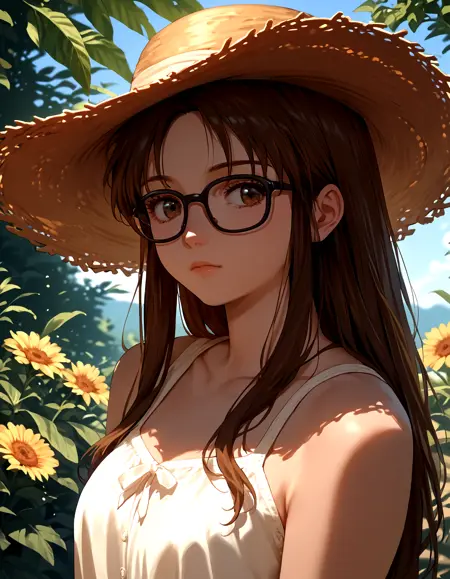 基本プロンプト: nikaido_yoriko, black glasses, brown_hair, long hair