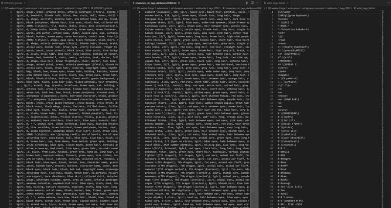 DTR: 约 700 万种完全不同的标签组合,按男性和女性角色分类。此外还包含一个适合工作环境(SFW)版本,但该版本无法保证不会出现不适合工作环境(NSFW)的图像。如有必要,您需要启用“屏蔽 NSFW”以降低潜在风险。