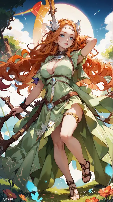| Trained Words | nophica, an anime girl, 1girl, solo, long hair, breasts, large breasts, hair ornament, white background, dress, cleavage, bare shoulders, jewelry, green eyes, upper body, flower, parted lips, signature, hair flower, orange hair, green dressCopied! nophica, an anime girl, 1girl, solo, long hair, breasts, large breasts, hair ornament, dress, cleavage, green eyes, standing, weapon, flower, orange hair, polearm, spear, bow (weapon), arrow (projectile)Copied! nophica, an anime girl, 1girl, solo, long hair, breasts, large breasts, simple background, hair ornament, white background, dress, holding, cleavage, bare shoulders, jewelry, closed mouth, green eyes, weapon, choker, necklace, holding weapon, sketch, hand on hip, wavy hair, feathers, polearm, staff, beads, green dress, bow (weapon), snake, holding staff, feather hair ornament, plunging necklineCopied! |