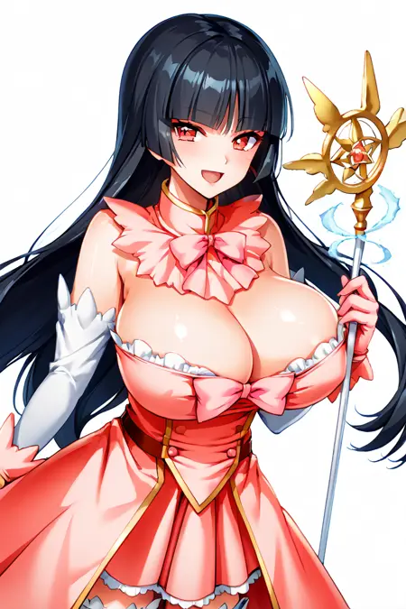 标签:粉红魔法少女,肩膀,粉红发带,白色过膝袜,可拆卸领子,魔法少女,粉红蝴蝶结,粉红手套,白色可拆卸袖子,粉红裙子,绝对领域,粉红连衣裙,粉红帽子,魔杖,