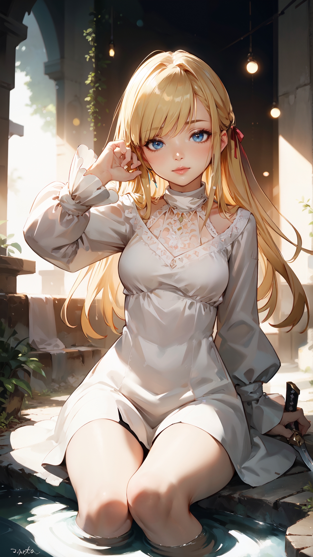 | トレーニングワード | ryne_waters, an anime girl, 1girl, solo, long hair, bangs, blue eyes, thighhighs, long sleeves, dress, ribbon, standing, full body, hair ribbon, boots, outdoors, sky, day, puffy sleeves, cloud, signature, white dress, orange hair, puffy long sleeves, hyurコピーしました! ryne_waters, an anime girl, 1girl, solo, long hair, breasts, looking at viewer, bangs, blue eyes, blonde hair, simple background, long sleeves, white background, dress, ribbon, holding, closed mouth, weapon, hand up, signature, holding weapon, white dress, short dress, knife, puffy long sleeves, holding knife, dagger, reverse grip, holding dagger, hyurコピーしました! ryne_waters, an anime girl, 1girl, solo, long hair, breasts, looking at viewer, bangs, blue eyes, simple background, long sleeves, white background, dress, ribbon, collarbone, hair ribbon, upper body, parted lips, white dress, orange hair, clothing cutout, pink ribbon, hyurコピーしました! |