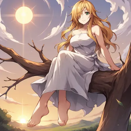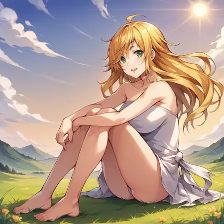 Marie, blonde hair, green eyes, long hair, scar on neck,