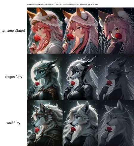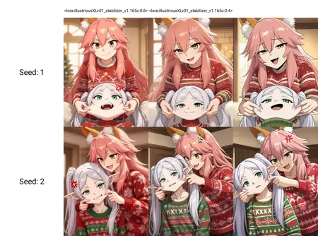 与 illus01 v1.93 ~ v1.121 相同的新特性。摘要:新增照片数据集 “Touching Grass”——更自然的纹理、背景与光影,角色效果减弱以提升兼容性。