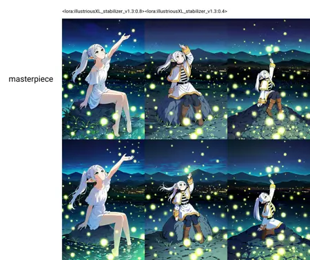 与 illus01 v1.93 ~ v1.121 相同的新特性。摘要:新增照片数据集 “Touching Grass”——更自然的纹理、背景与光影,角色效果减弱以提升兼容性。