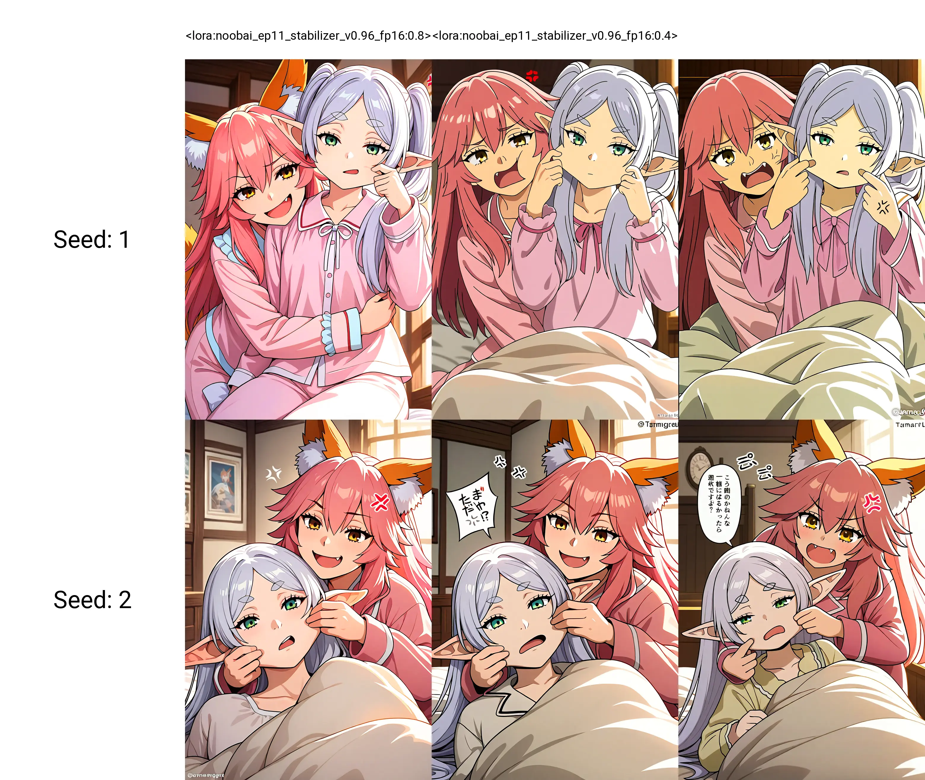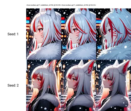 - 개선된 데이터셋 태그. LoRA 구조 및 가중치 분포 개선. 이미지 구성에 대한 영향이 줄어들고 더 안정적이 되었습니다.