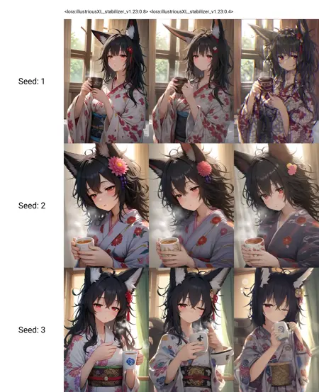 - 개선된 데이터셋 태그. 개선된 LoRA 구조 및 가중치 분포. 안정성 향상 및 이미지 구성에 대한 영향 감소.