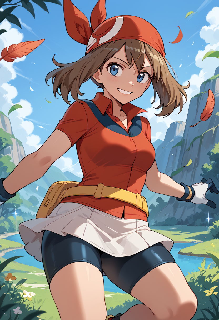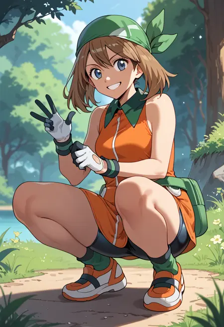| 학습된 단어 | May_RS, medium hair, brown hair, blue eyes, red bandana,복사됨! May_RS, medium hair, brown hair, blue eyes, red bandana, collared shirt, red shirt, short sleeves, white gloves, fanny pack, yellow belt, white skirt, bike shorts under skirt, bike shorts, red footwear, 복사됨! May_Es, medium hair, brown hair, blue eyes, green bandana, 복사됨! May_Es, medium hair, brown hair, blue eyes, green bandana, collared dress, sleeveless dress, orange dress, white gloves, fanny pack, green belt, shorts under dress, bike shorts, orange footwear, 복사됨! |