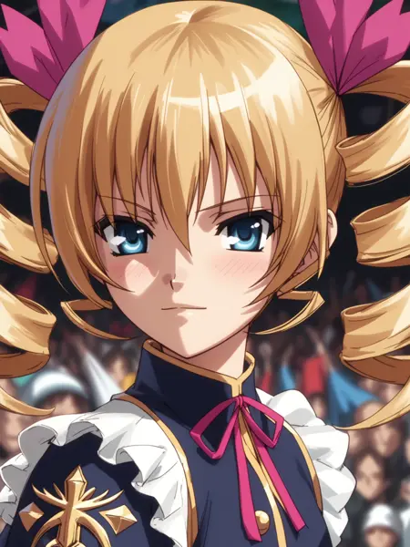 blue dress, black skirt, pink collar, underbust, bare shoulders, detached sleeves, puffy sleeves, skull hair ornament, pink ribbon시즌 2: